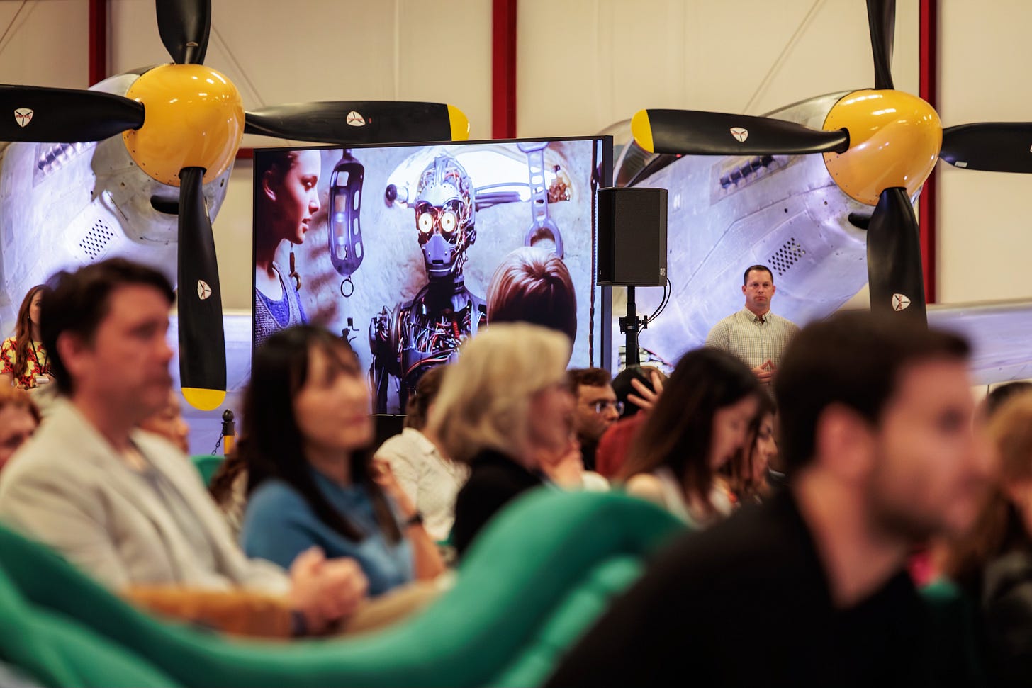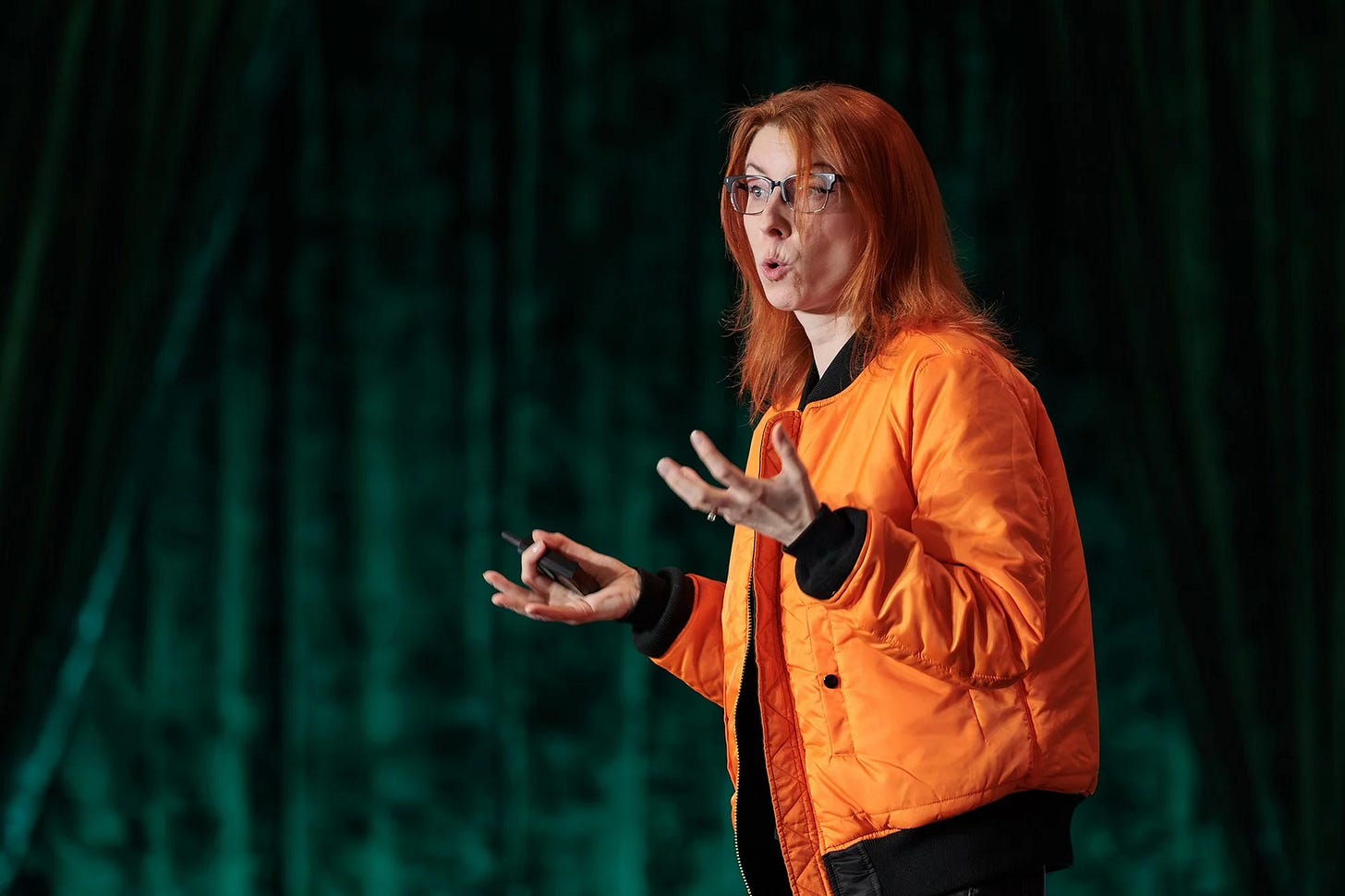 Dr. Suzanne Gildert keynoting at MARS tech summit hosted by Jeff Bezos. Photo by Ben Rose Photography.